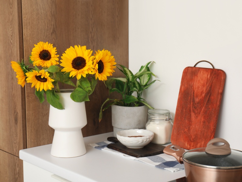 - Hoa tươi và cây xanh: đặt chậu cây nhỏ như trầu bà, lan ý, hoặc cây húng quế vừa giúp thanh lọc không khí, vừa thu hút tài lộc.